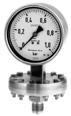 - EN 837-3, a choice of overpressure safety is available up to 40, 100 or 400 bar, metallic diaphragm cushion provides for overpressure safety, without diaphragm hydraulically cushioned.