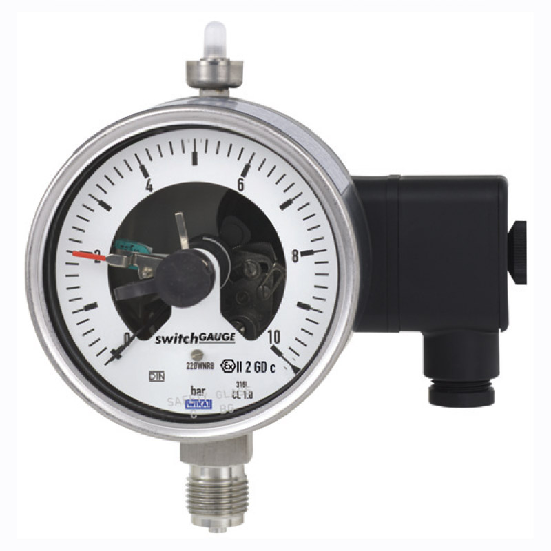 WIKA BOURDON TUBE PRESSURE GAUGES WITH SWITCH CONTACTS MODELS PGS23.1X0, STAINLESS STEEL VERSION