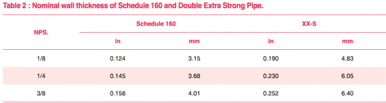 - Pipe actually used may be thinner or thicker in nominal wall than that shown in table 1.