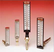 Tel-Tru Glass Industrial Thermometers are used on pipelines of all types in building construction, process piping, tanks, air ducts, etc, and are appoved by architects, consulting engineers and contractors everwhere. One adjustable angle thermometer does the work of six specific form thermometers. When installing, it may be adjusted to any desired angle.